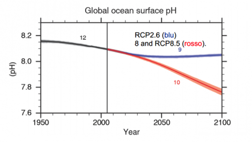 The ocean has been accumulated most of the heating in the climate system. Experts assessed “with high confidence” that the ocean's heat absorption accounted for more than 90% between 1971 and 2010. In the same time range, the upper 75m warmed by 0.11°C per decade. The ocean has absorbed about 30% of carbon dioxide emitted by human activities, causing ocean acidification. The average pH of the oceanic surface decreased by 0.1. Ocean warming will last throughout 21st century. It will gradually expand to deeper ocean and it could affect ocean circulation systems. Without any mitigation strategy, the ocean PH could reach -7.8.