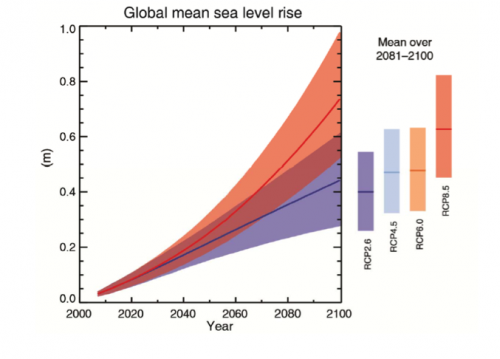 From 1901 to 2010 the sea level rose by 19 cm (average global estimation), with significant variation at the regional scale. The rate of sea-level rise since the mid-19th century has been larger than the mean rate during the previous two millenia. Sea level is expected to rise by 40-63 cm in the course of this century.
