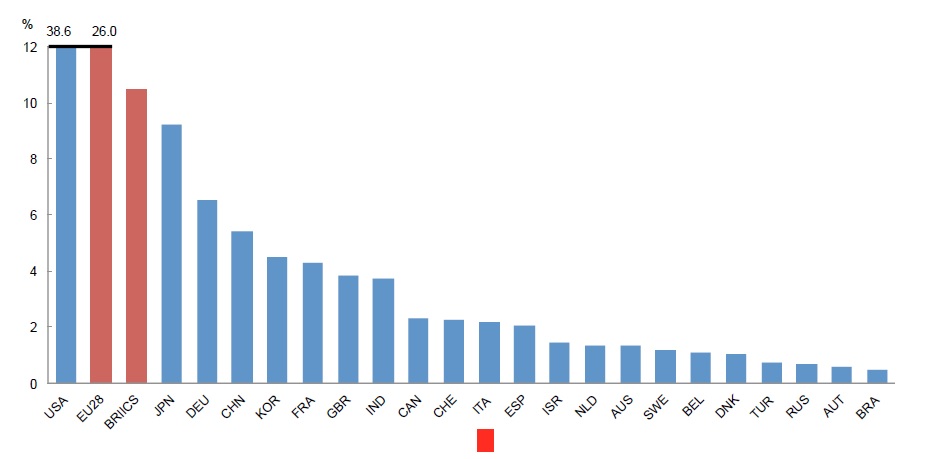 On the basis of the new OECD 2013 report – Science, Technology and Industry Scoreboard 2013 (OECD Publishing) – we tried to draw a picture of the Italian situation within these fields, compared to other OECD countries. Here are the most significant data.