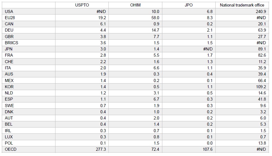 The amount of trademark registration requested to foreign offices or presented from abroad, provide good insight on how firms of a certain country manage to enter foreign markets. From this point of view, Italy is well-placed especially in the European market, thanks to the amount of applications addressed to the European Office for the Harmonization in the Internal Market (OHIM), which is second only to Germany and England, and only slightly inferior to Spain. Also standing out is the capability of Italian brands to aim at the Japanese market: the amount of requests presented to the Japan Patent Office (JPO) compete, in quantity, with the German, English and French ones.