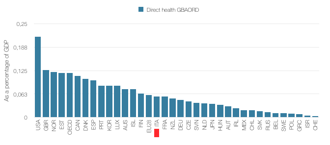 Regarding the public investment in socio-health and biomedical research, the Italian government is both under the OCSE average and the European Union average, and does not reach 0.1% of the GDP.