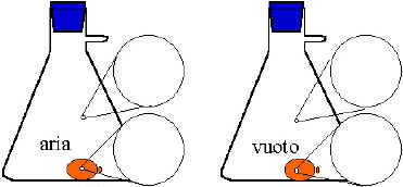un palloncino di gomma chiuso con poca aria viene introdotto nella beuta, e da