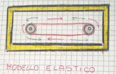 Due rulli ruotanti della stessa dimensione e fissati al centro con un perno sono collegati da un elastico che li fa girare nella stessa direzione. |