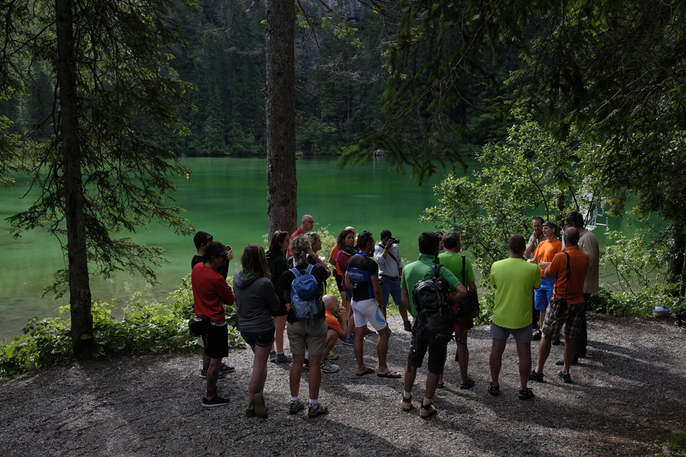 Sono le otto e mezza del mattino e la piccola truppa di scienziati e cittadini di Terramare si è riunita sulle rive del Lago di Tovel, dove il guardaparco Matteo Zeni tiene le fila di una piccola conversazione sull'orso bruno in Trentino. «Qui l’orso c’è sempre stato; questo grande animale un tempo era presente in tutta l’Eurasia ed era diffuso in molti tipi di ambiente, dalla tundra alle zone aride, e quindi non solo in alta montagna o nei boschi, come spesso si è portati a credere. Adesso è invece confinato nell’area che va dalla Paganella alla Val di Tovel, che potremmo definire l’ultimo villaggio degli orsi (come quello dei galli di Asterix)».
