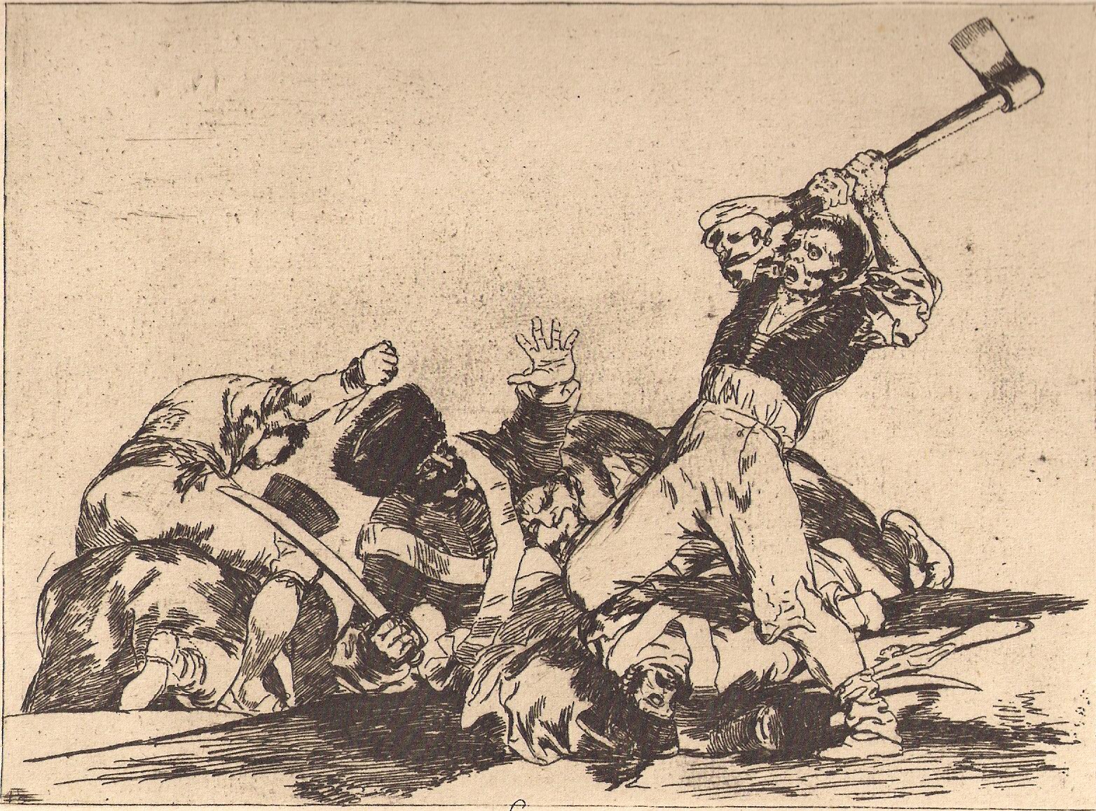 Francisco Goya, "Con o senza la ragione", Acquaforte, guazzo, punta secca, bulino e brunitoio. 162 x 223 mm. Da: "I disastri della guerra".