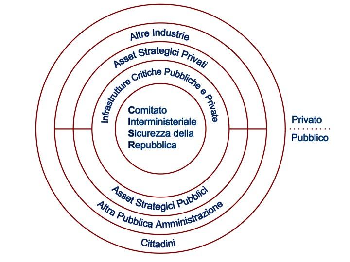 Figura 6. Gli asset pubblici e privati del Paese da difendere. Più vicini si è al centro, più deve aumentare il coordinamento e la velocità nella risposta. Il settore con difese non adeguate diventa, infatti, l’anello debole dell’intero sistema Paese