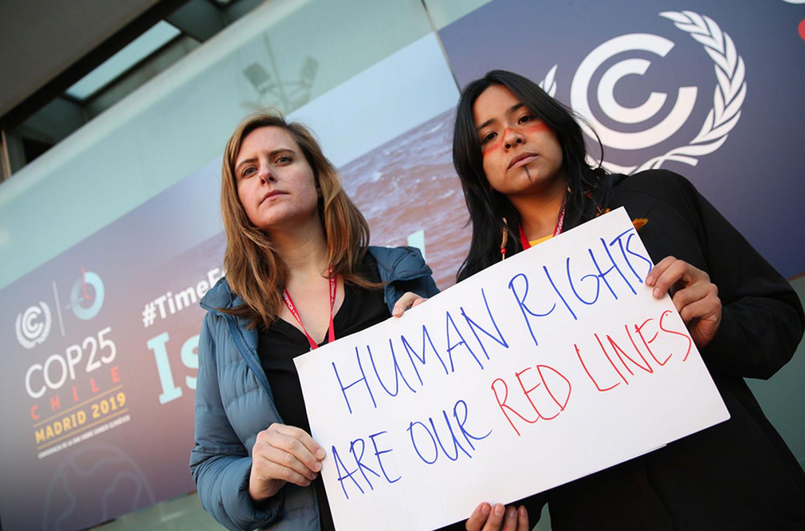 Attiviste per i diritti umani durante la COP 25 a Madrid. Credit: IISD.