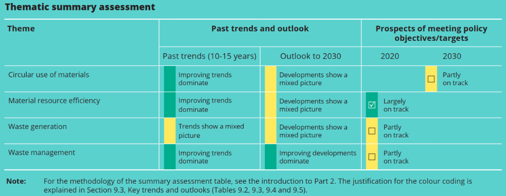 Le macro-tendenze, ricavate dai grafici riportate sopra (dal Rapporto SOER 2020) riassumono l'andamento storico (2010), lo stato attuale (2020) e la previsione del raggiungimento degli obiettivi delineati dall'Agenda 2030.