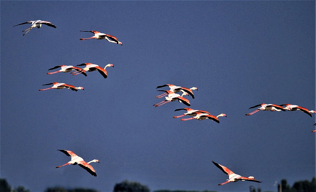 Nell'immagine: fenicotteri in volo nelle valli di Comacchio, Wikimedia Commons
