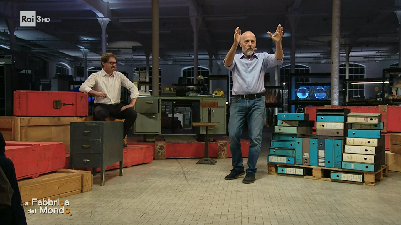 La prima delle tre puntate de “La fabbrica del mondo”, lo spettacolo di Marco Paolini e Telmo Pievani, è andata in onda su Rai 3 sabato 8 gennaio ed è stata subito convincente e appassionante. Lo spettacolo è un percorso e una riflessione sulla scienza e sulla sua comunicazione, nella cornice del rapporto dell’uomo con l’ambiente, e il suo merito è la collaborazione tra un uomo di scienza esperto e rigoroso e un uomo di teatro, in grado di portare con sé anche un pubblico che non ne può più di pandemia.