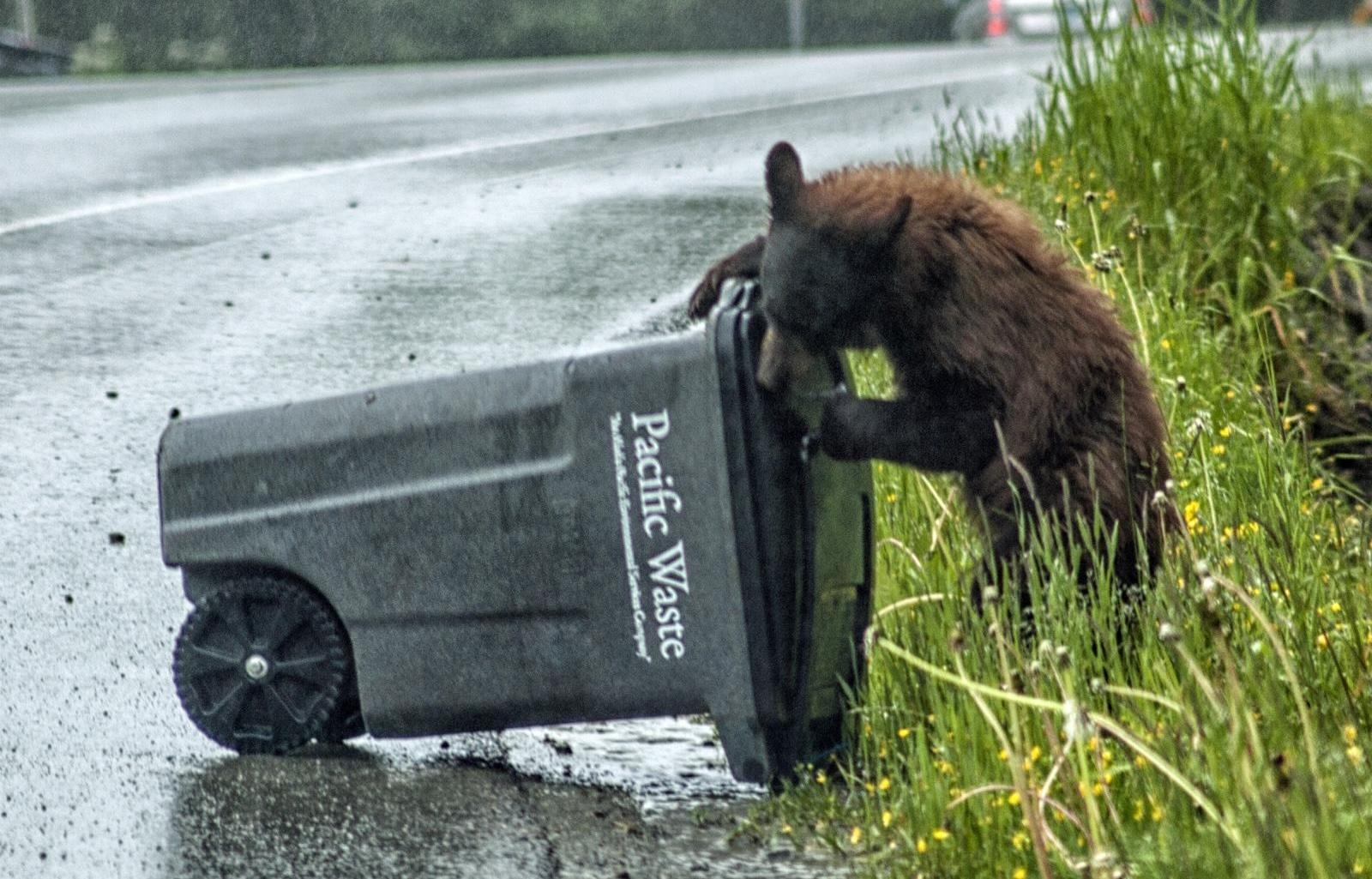Immagine: giovane orso nero americano che cerca di aprire un cassonetto. Fonte: Wikimedia commons