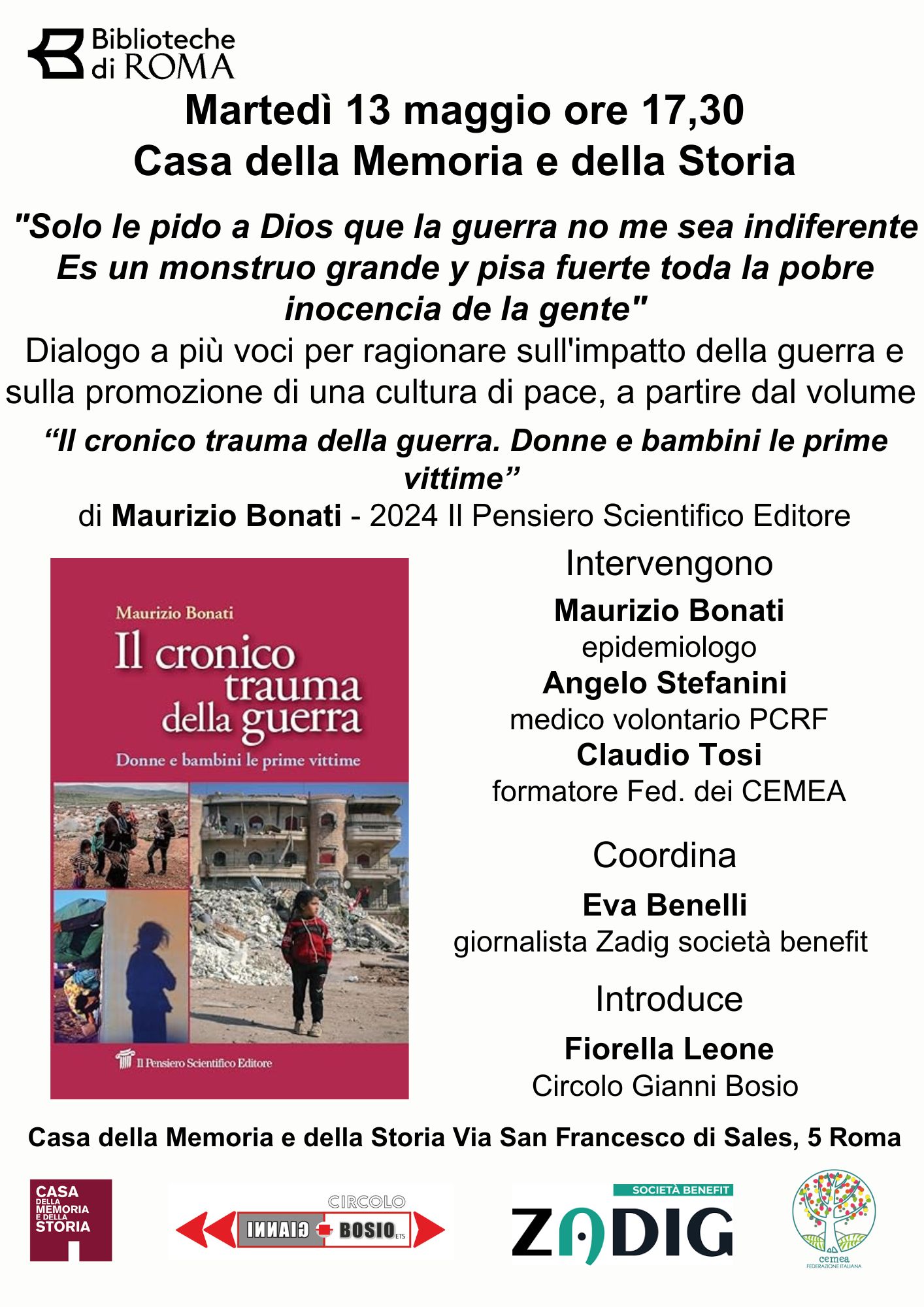 Agli impatti della guerra e alle condizioni per costruire politiche di pace è dedicato un incontro alla Casa della memoria e della storia di Roma, martedì 13 maggio, ore 17.30. L'incontro sarà trasmesso in streaming anche su Scienza in rete.