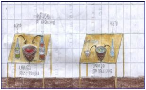 I bambini avevano a disposizione anche un secchio con acqua pulita e uno vuoto per scaricare i risultati delle prove e sciacquare i contenitori.