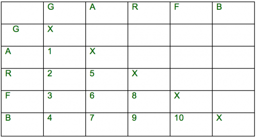 La maestra e il tutor hanno costruito alla lavagna una tabella a doppia entrata con i 5 materiali in riga e in colonna nello stesso ordine; hanno poi numerato le caselle corrispondenti a ogni diverso abbinamento da 1 a 10.
