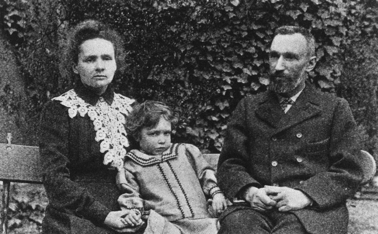 Pierre e Marie Curie con la figlia Irène. Photo: U.S. National Library of Medicine.
