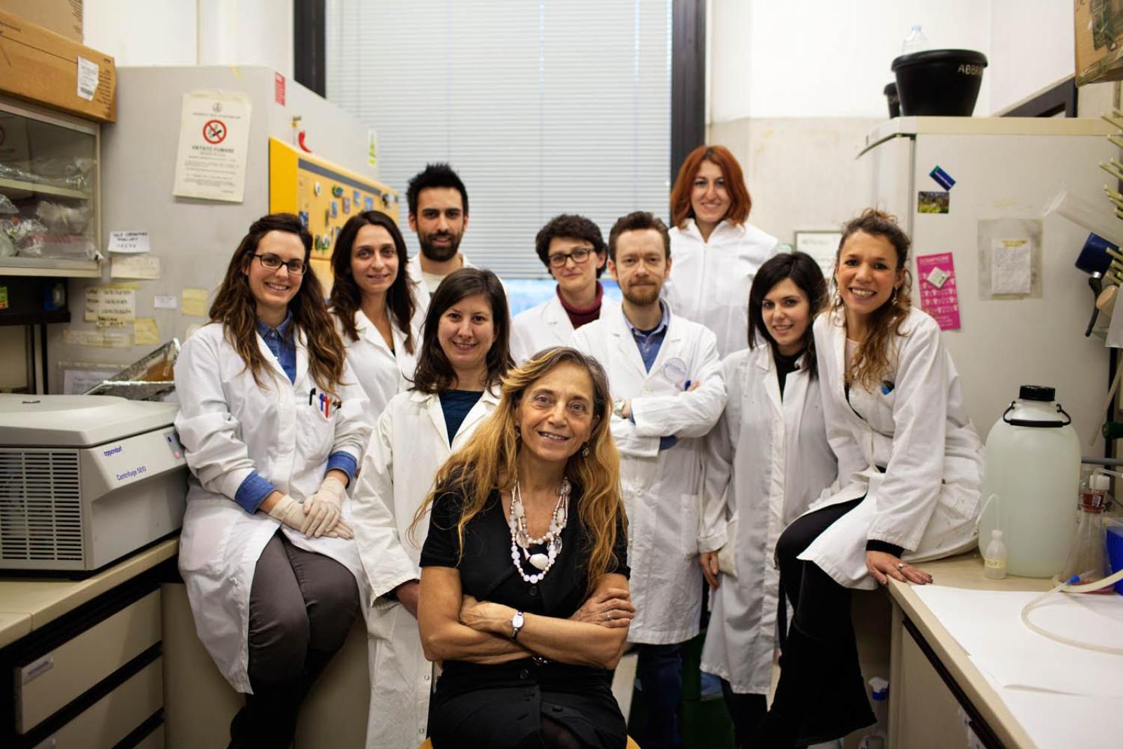La professoressa Maria Pia Abbracchio, al centro, con il suo team di ricerca.
