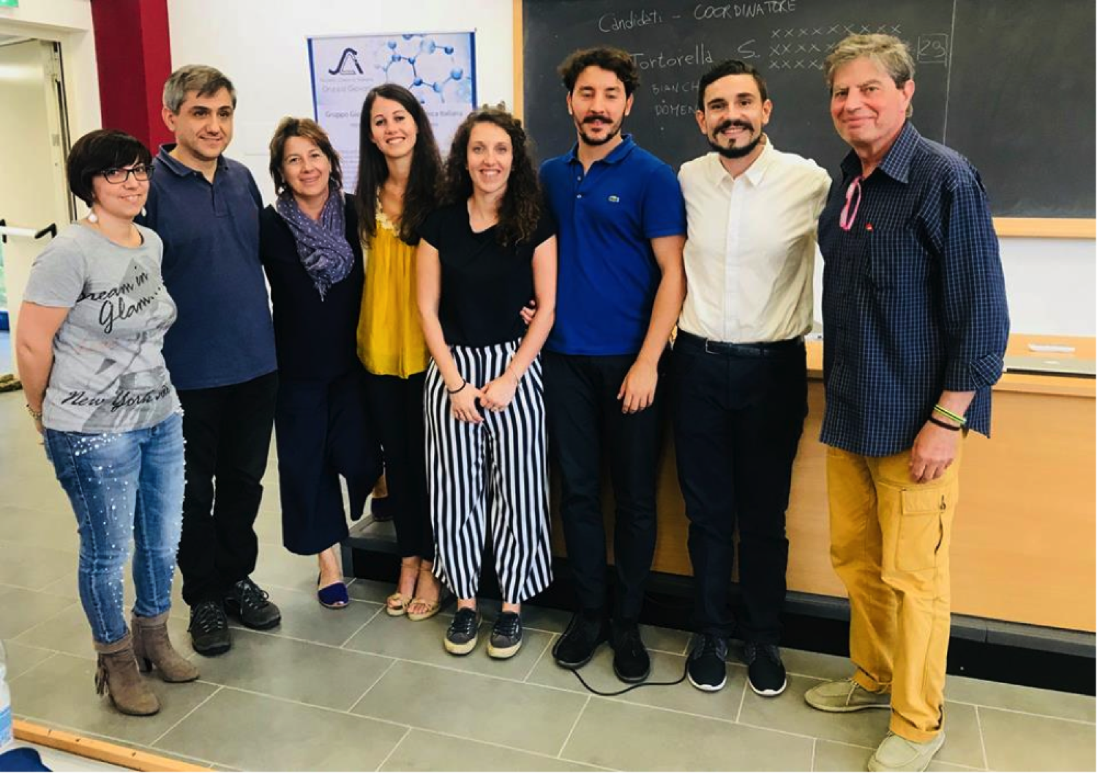 Consiglio direttivo del gruppo interdivisionale “Diffusione della cultura chimica” per il triennio 2019-2021, da sinistra: Valentina Domenici, Alberto Zanelli, Valeria Costantino, Elena Lenci, Sara Tortorella (coordinatore), Stefano Cinti, Adriano Intiso, Luciano D’Alessio