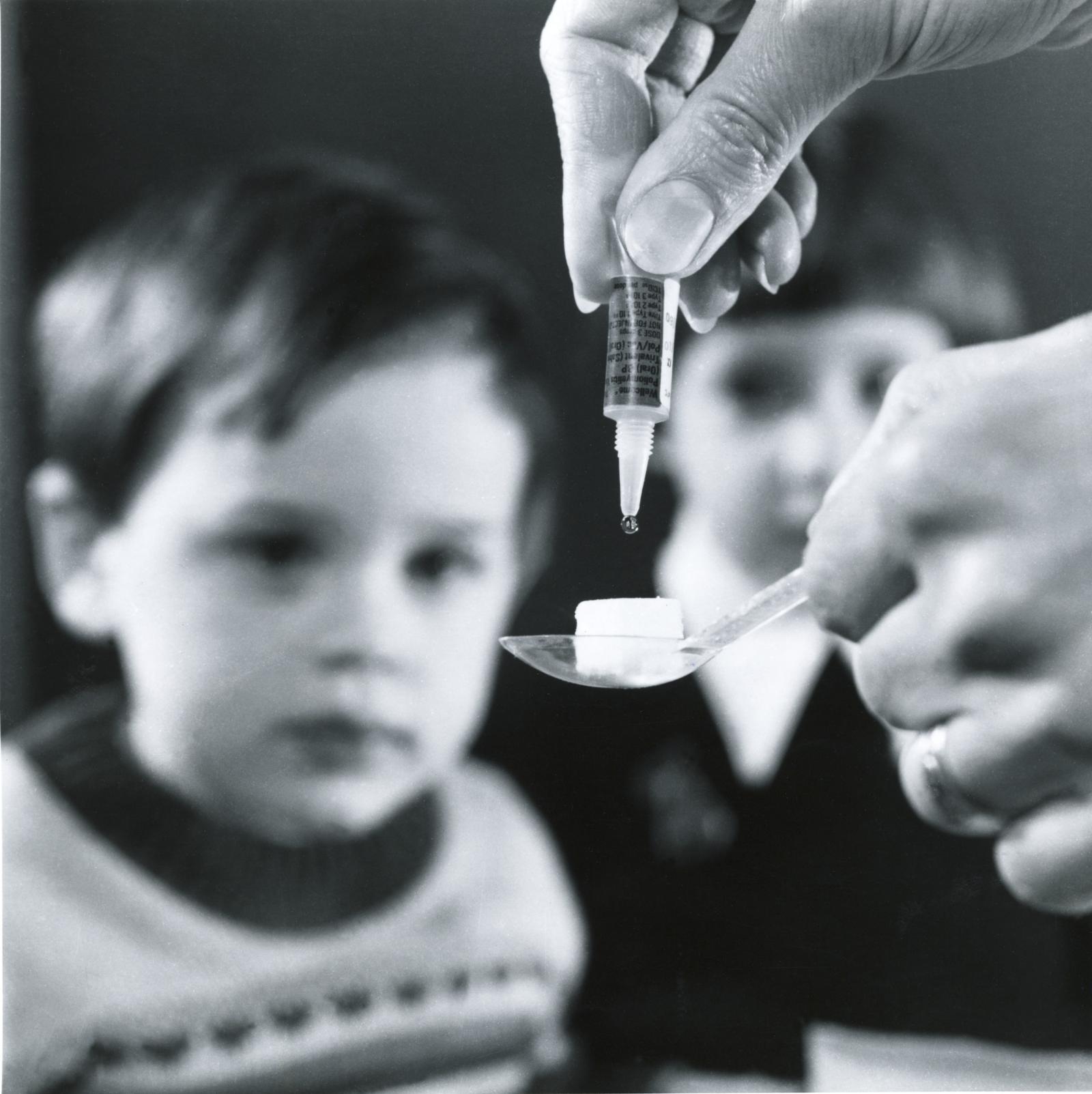 Il vaccino sviluppato da Sabin si assume per via orale, e può essere messo su una zolletta di zucchero per renderlo più appetibile ai bambini. Crediti: Wellcome Images/Wikimedia Commons. Licenza: CC BY 4.0