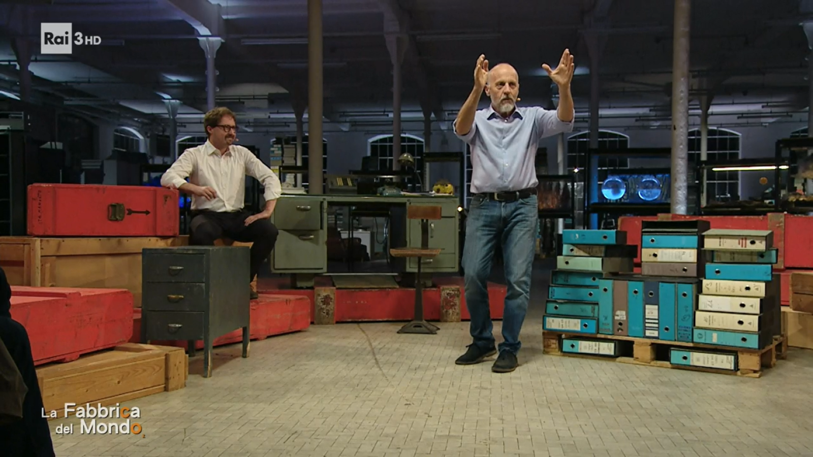 La prima delle tre puntate de “La fabbrica del mondo”, lo spettacolo di Marco Paolini e Telmo Pievani, è andata in onda su Rai 3 sabato 8 gennaio ed è stata subito convincente e appassionante. Lo spettacolo è un percorso e una riflessione sulla scienza e sulla sua comunicazione, nella cornice del rapporto dell’uomo con l’ambiente, e il suo merito  è la collaborazione tra un uomo di scienza esperto e rigoroso e un uomo di teatro, in grado di portare con sé anche un pubblico che non ne può più di pandemia.