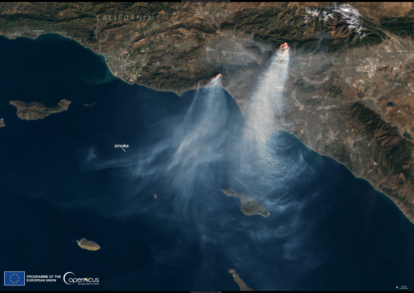 Image: California wildfires photographed by the European Union, Copernicus Sentinel-3 imagery