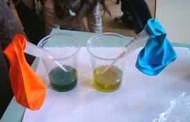 bicarbonato nel sacchetto, altri versano l�aceto nel sacchetto e