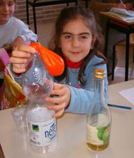 palloncini con l�aria della pompa, i bambini tengono tappata