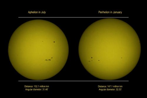 Confronto fra le dimensioni del Sole in Gennaio e Luglio
