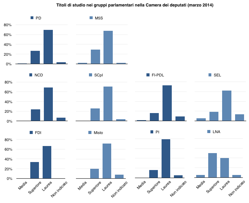 Il gruppo parlamentare più numeroso è quello del Partito democratico che quindi conta anche il numero maggiore di laureati.