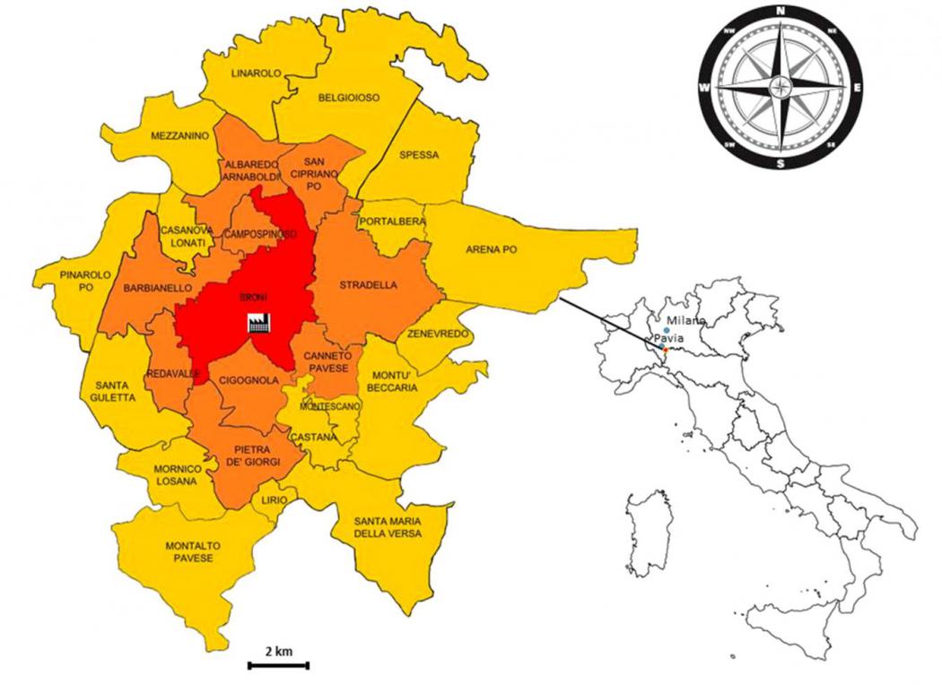 Un totale di 147 casi registrati di mesotelioma maligno (138 alla pleura e 9 al peritoneo) nella zona di Broni dal 2000 al 2011, metà dei quali dovuti a contaminazione ambientale (non solo a Broni ma anche a Stradella), un quarto all'esposizione sul luogo di lavoro e un quarto in famiglia. Lo studio è stato pubblicato recentemente sulla rivista Environment International.