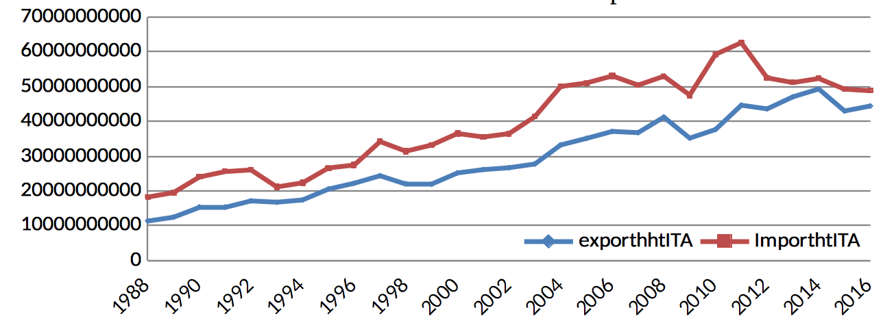 Grafico 2. Italia: Andamento EXP e IMP prodotti HT