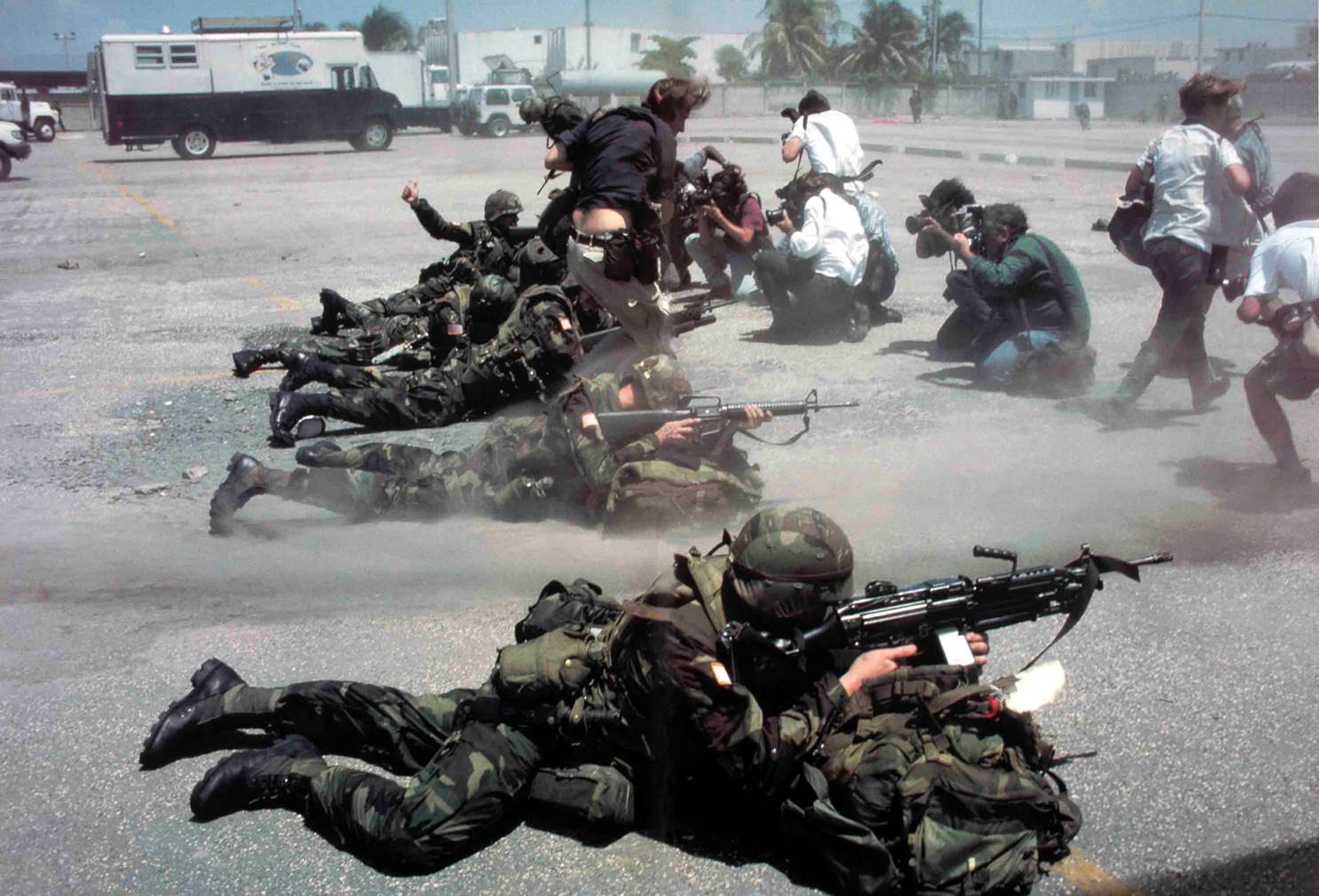 Il contesto storico: deposto il dittatore Duvalier, ad Haiti si erano tenute nel 1991 nuove elezioni con la vittoria di Aristide, che però in breve venne deposto dai militari. Dopo forti pressioni internazionali gli Stati Uniti decisero di intervenire con la forza ad Haiti per ristabilire il presidente regolarmente eletto. I media vennero informati con largo anticipo dell’arrivo dei marines e li attesero all’aeroporto di Port Au Prince.