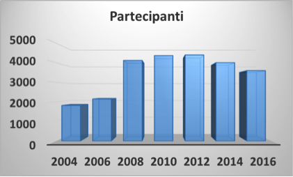 Dati ufficiali relativi al numero di partecipanti, paesi rappresentati ed espositori delle prime sette edizioni di ESOF (Fonte: EuroScience)