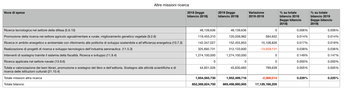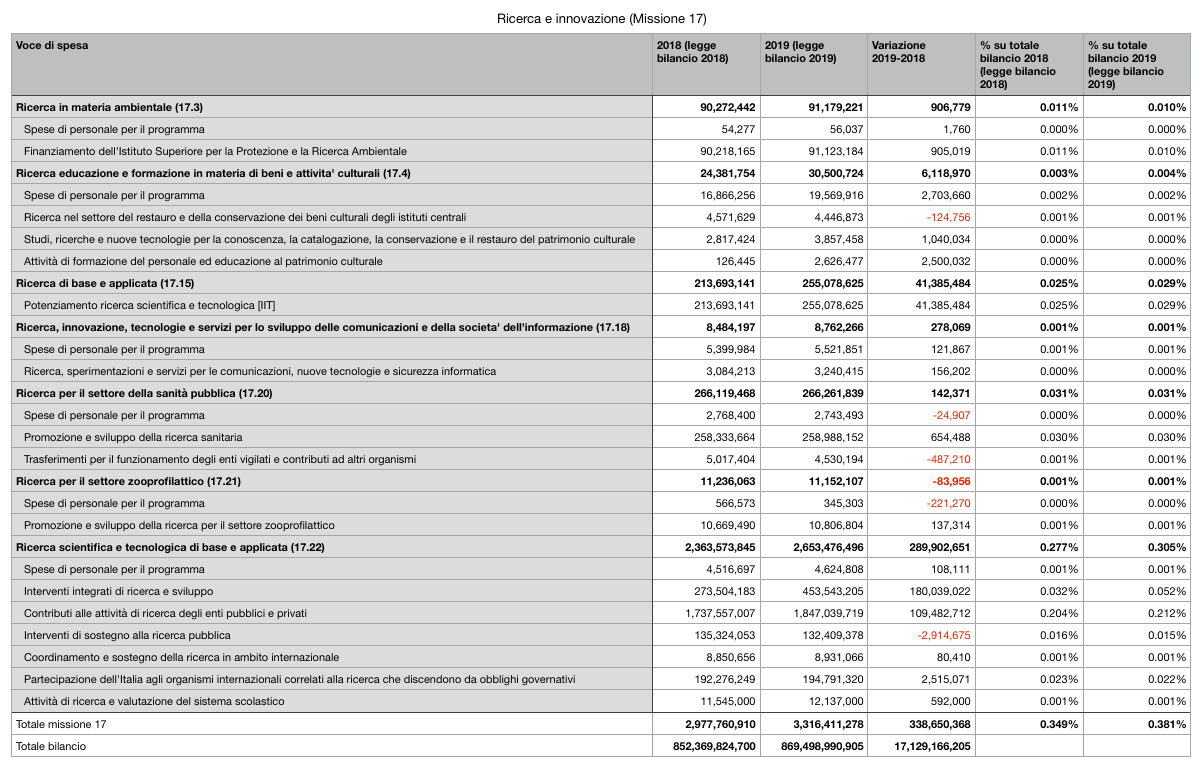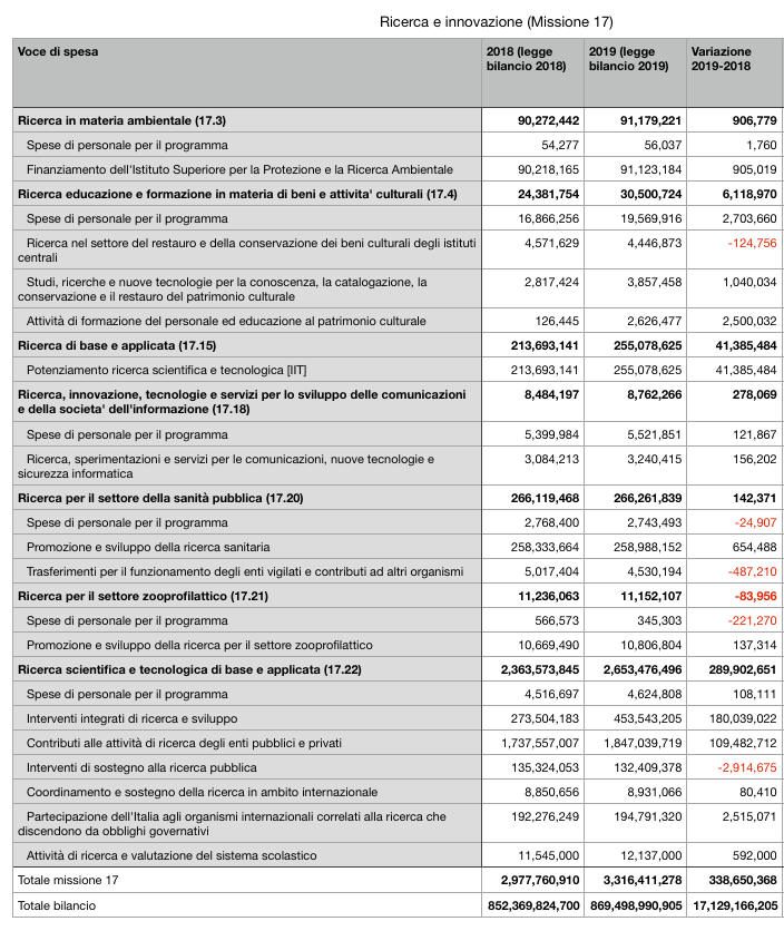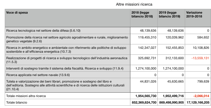 Missione ricerca: confronto tra legge bilancio 2018 e legge bilancio 2019