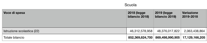 Più consistente invece la differenza dei due bilanci per la Missione 22 (Scuola), pari a circa 2 miliardi di euro.
