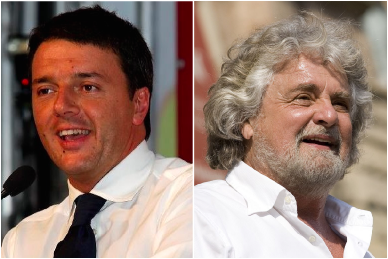 Matteo Renzi, adattato da Wikipedia (licenza CC BY-SA 3.0) e Beppe Grillo, adattato da Giuseppe Favia/Wikimedia Commons (licenza CC BY-SA 2.0)