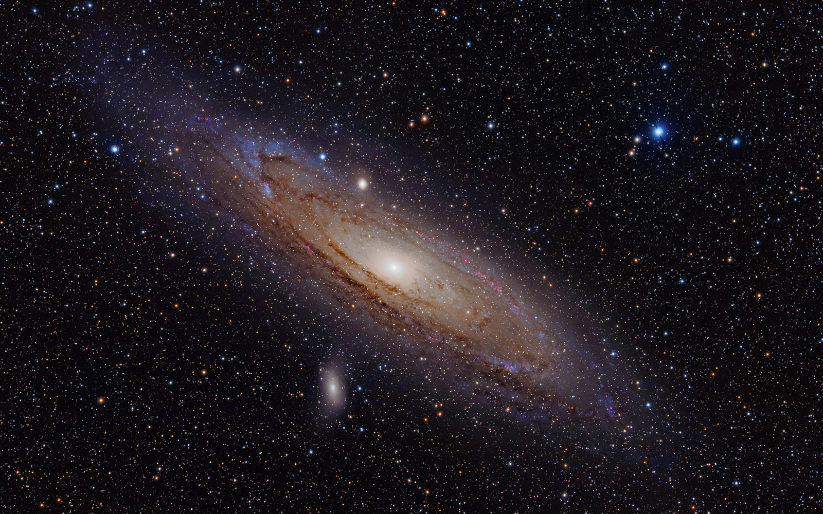 Splendida immagine della Nebulosa di Andromeda (M31). Nel 1925 Edwin Hubble identificò in questa galassia una stella variabile della classe delle Cefeidi e riuscì a determinarne la distanza. La scoperta pose fine al grande dibattito sulla natura delle galassie e indicò che l’Universo era molto più grande della Via Lattea. La cosmologia osservativa muoveva i primi passi. Crediti: Adam Evans
