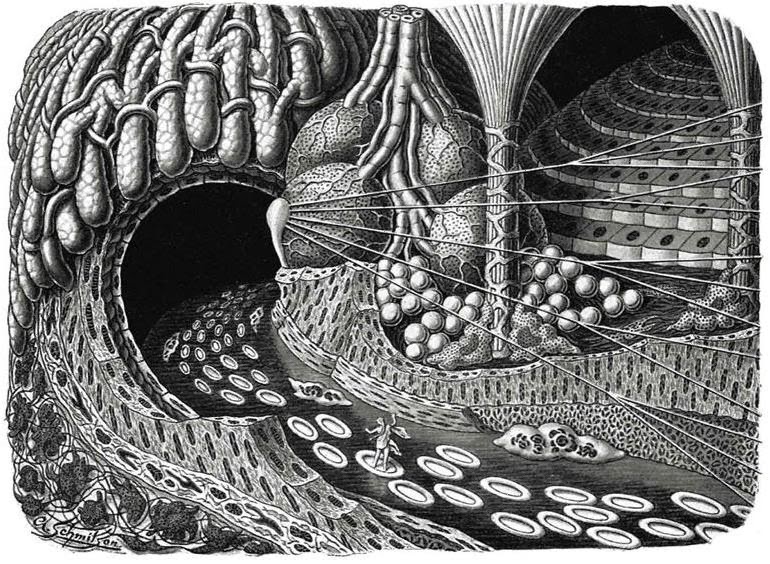 Chi non ha mai immaginato, da bambino, che la macchina perfetta del nostro corpo fosse controllata da piccoli omini preposti alle più diverse e sofisticate funzioni? Triturare il cibo, comandare a un braccio di alzarsi, sentire il profumo delle rose… E quanti di noi sono rimasti affascinati dai viaggi nel corpo umano, accompagnati da Piero Angela? Fritz Kahn riesce ad appagare le nostre fantasie infantili coniugandole a chiarezza e rigore. Se c’è un padre (o un nonno) della divulgazione scientifica per mezzo dell’infografica, quello è sicuramente lui.