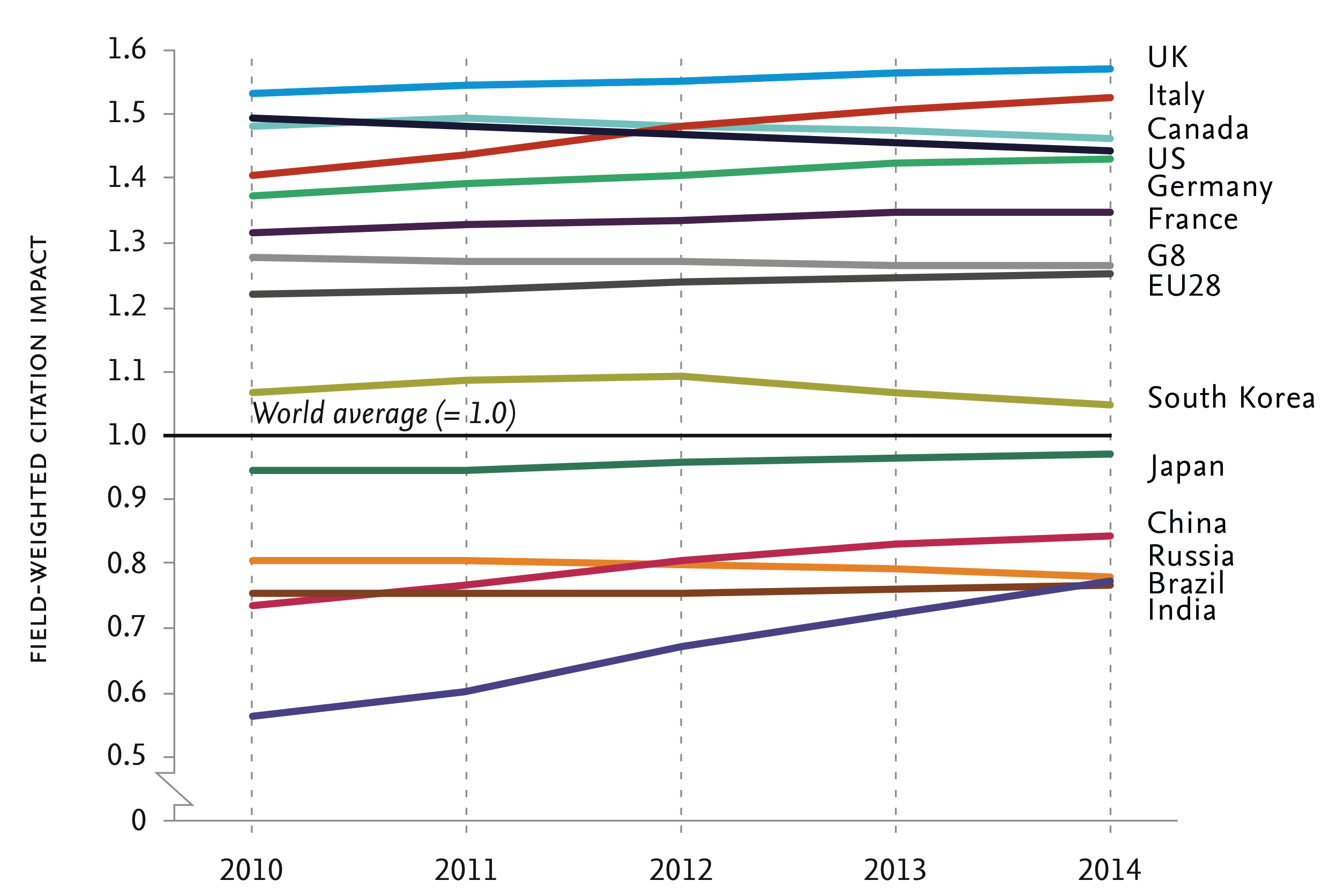 Citation impact pesato per campo di ricerca ( periodo: 2010-2014).