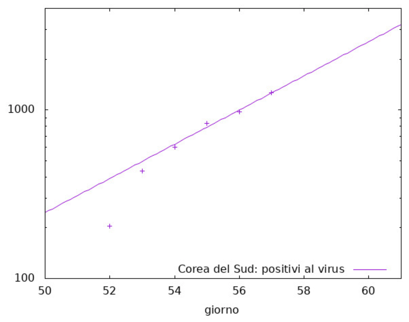 La tendenza osservata per l’Italia può essere confrontata con lo sviluppo epidemico osservato in Corea del Sud, dove la struttura di età della popolazione e il livello di assistenza sanitaria sembrano paragonabili a quelli italiani.