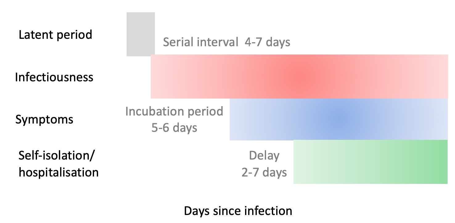 Caratteristiche dell'infezione da COVID-19 che condizionano il modo in cui le misure di mitigazione incideranno sulla curva epidemica. Se la contagiosità comincia prima dei sintomi diventa cruciale il ritardo con cui una persona contagiosa cerca cure o si auto-isola.
