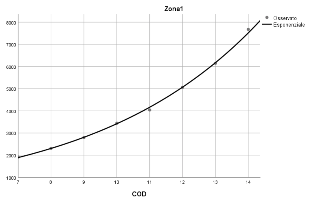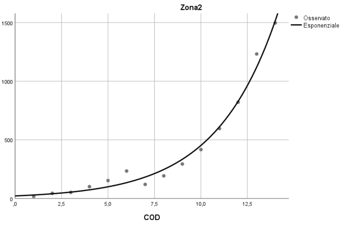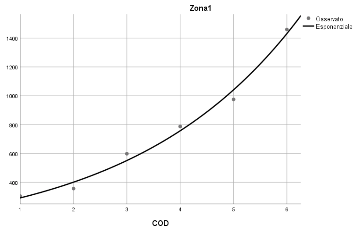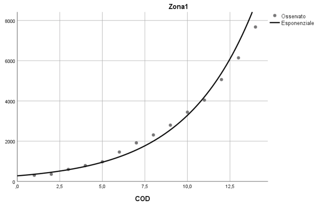 Il modello di regressione utilizzato è di tipo esponenziale: