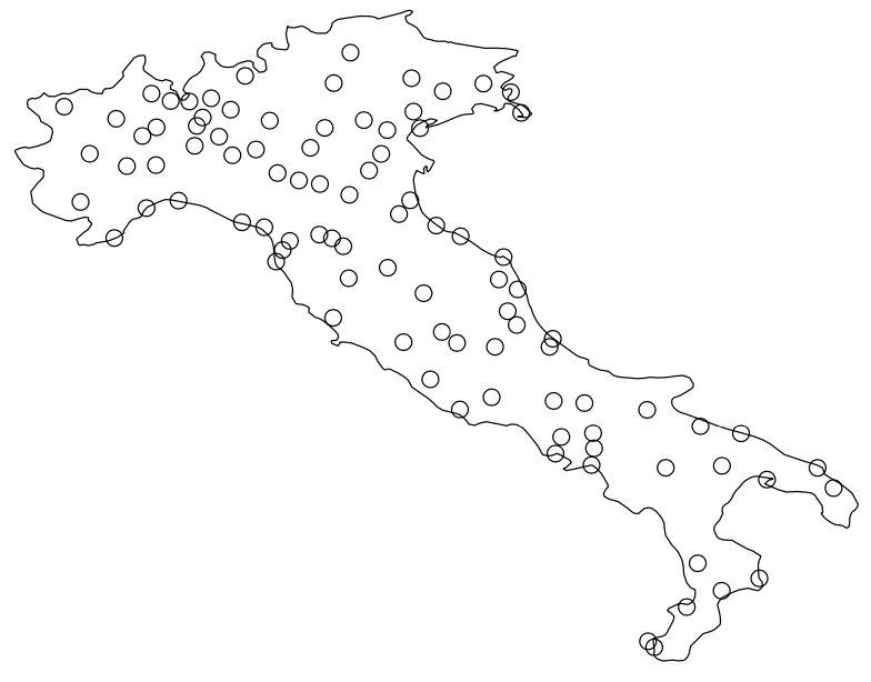 Figura 1. Distribuzione spaziale delle 94 province presenti all’interno della penisola tra le 107 totali.