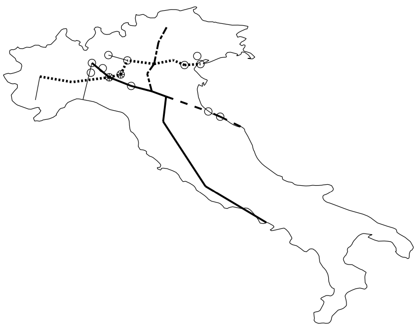 Notiamo infatti che la maggioranza dei loro capoluoghi si trovano lungo quattro direttrici autostradali di carattere internazionale: