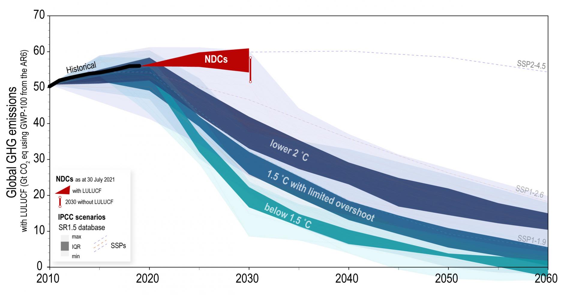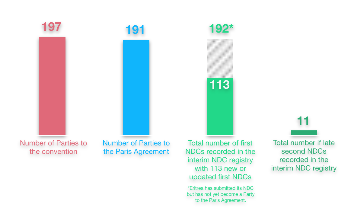 Secondo un aggiornamento dell'UNFCCC, gli obiettivi NDCs dei paesi aderenti all'Accordo di Parigi migliorano ma non sono ancora sufficienti. In particolare, considerando i soli 113 paesi su 191 aderenti all’Accordo di Parigi che hanno aggiornato i loro obiettivi nazionali, entro il 2030 le emissioni di gas serra dovrebbero diminuire del 12% rispetto al 2010. Tuttavia, tutti gli NDCs – anche quelli non aggiornati – danno complessivamente ancora un aumento delle emissioni del 16% nel 2030 rispetto al 2010.