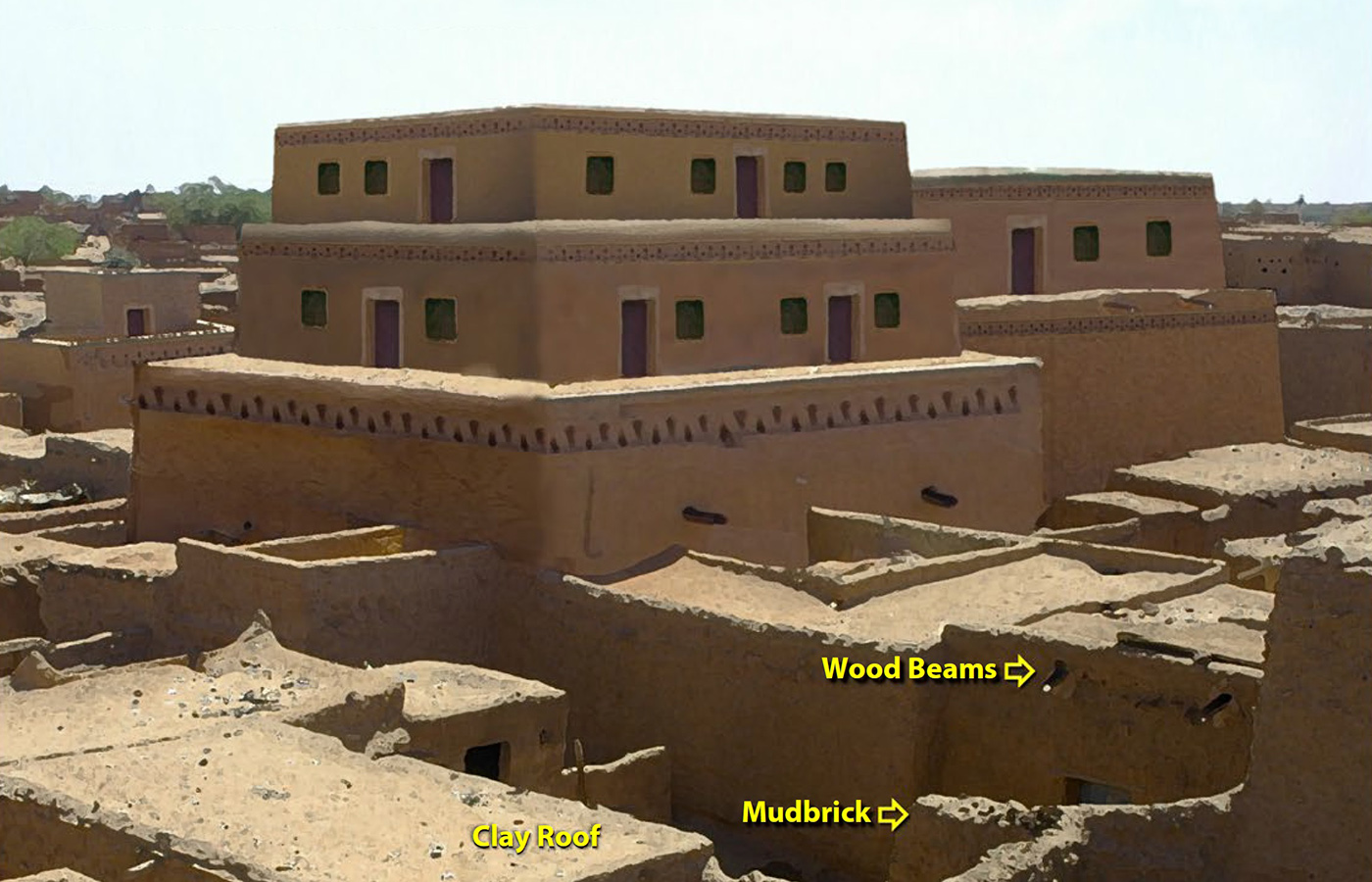 Ricostruzione artistica della costruzione più imponente di Tall el-Hammam. Dai resti rinvenuti, gli archeologi stimano che il palazzo dell’acropoli potesse elevarsi per 4 o 5 piani, fosse lungo poco più di 50 metri e largo 27. Crediti: Nature / Ted E. Bunch et al. Licenza: CC BY 4.0