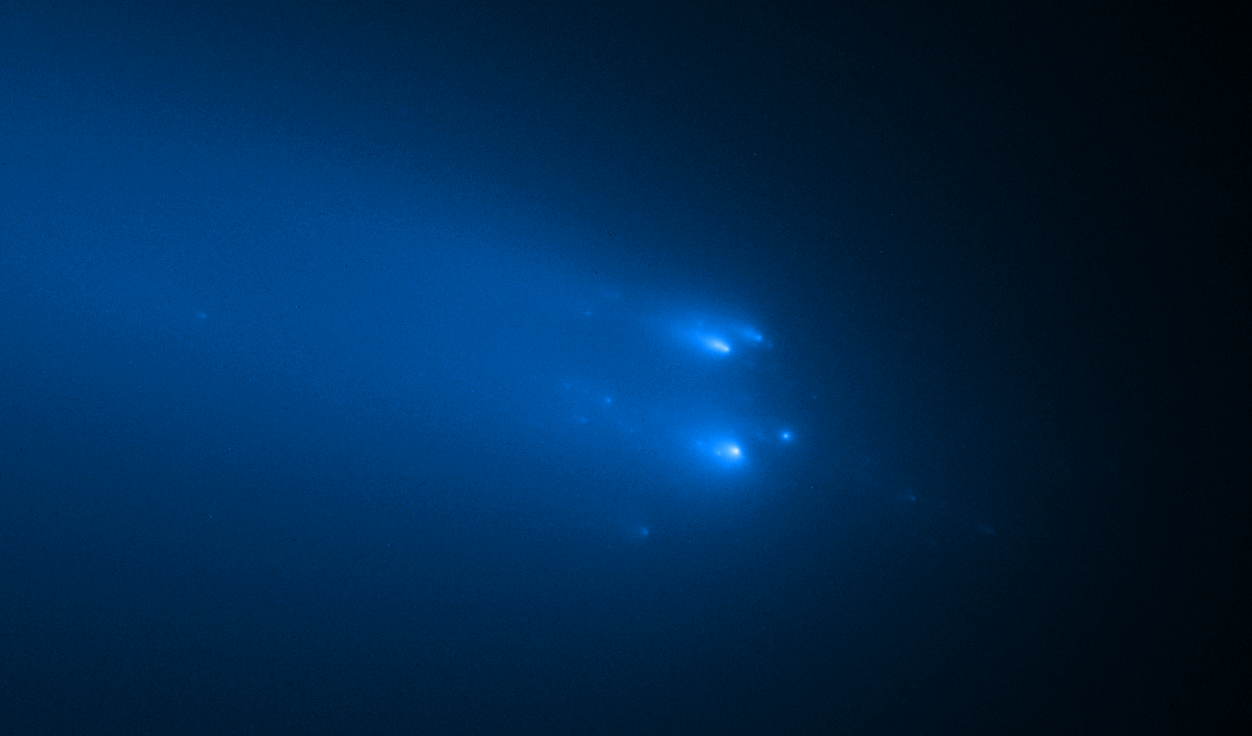 In copertina: l’immagine, ripresa il 20 aprile 2020 dal telescopio spaziale Hubble, mostra la frammentazione della cometa C/2019 Y4 (ATLAS). A tutt’oggi si tratta del caso meglio studiato di frammentazione cometaria. A metà degli anni Ottanta gli astronomi Victor Clube e William Napier suggerirono che alle origini del Taurid Complex vi fosse un evento di questo tipo avvenuto tra i 20 e i 30 mila anni fa. Crediti: NASA, ESA, STScI, and D. Jewitt (UCLA)