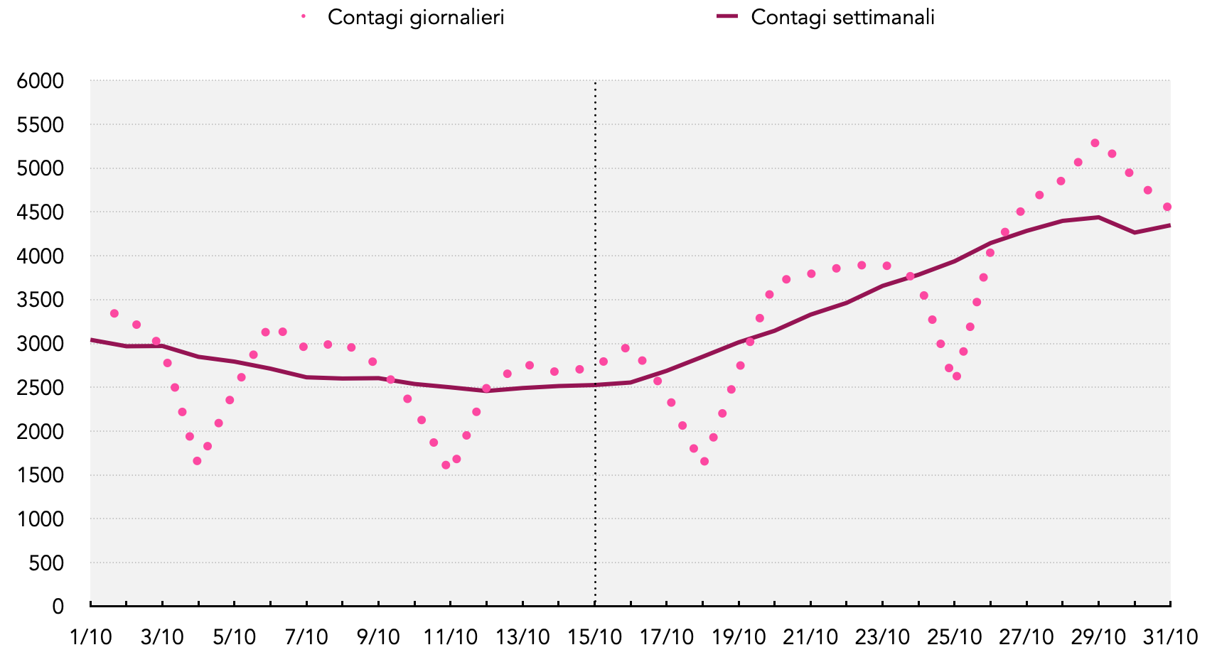 Figura 1. Nuovi contagi notificati nel mese di ottobre 2021