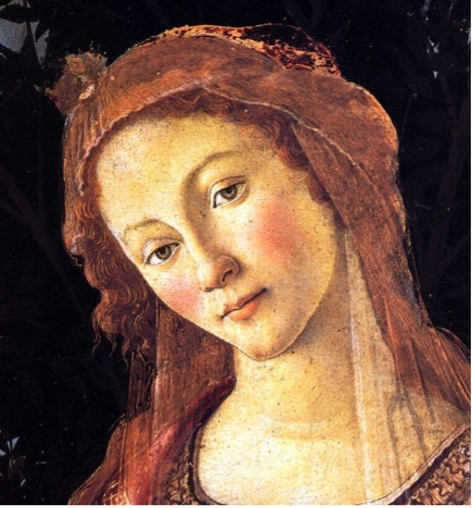 Figura 3. Sandro Botticelli, Primavera, particolare del volto di Venere, Galleria degli Uffizi, Firenze.
