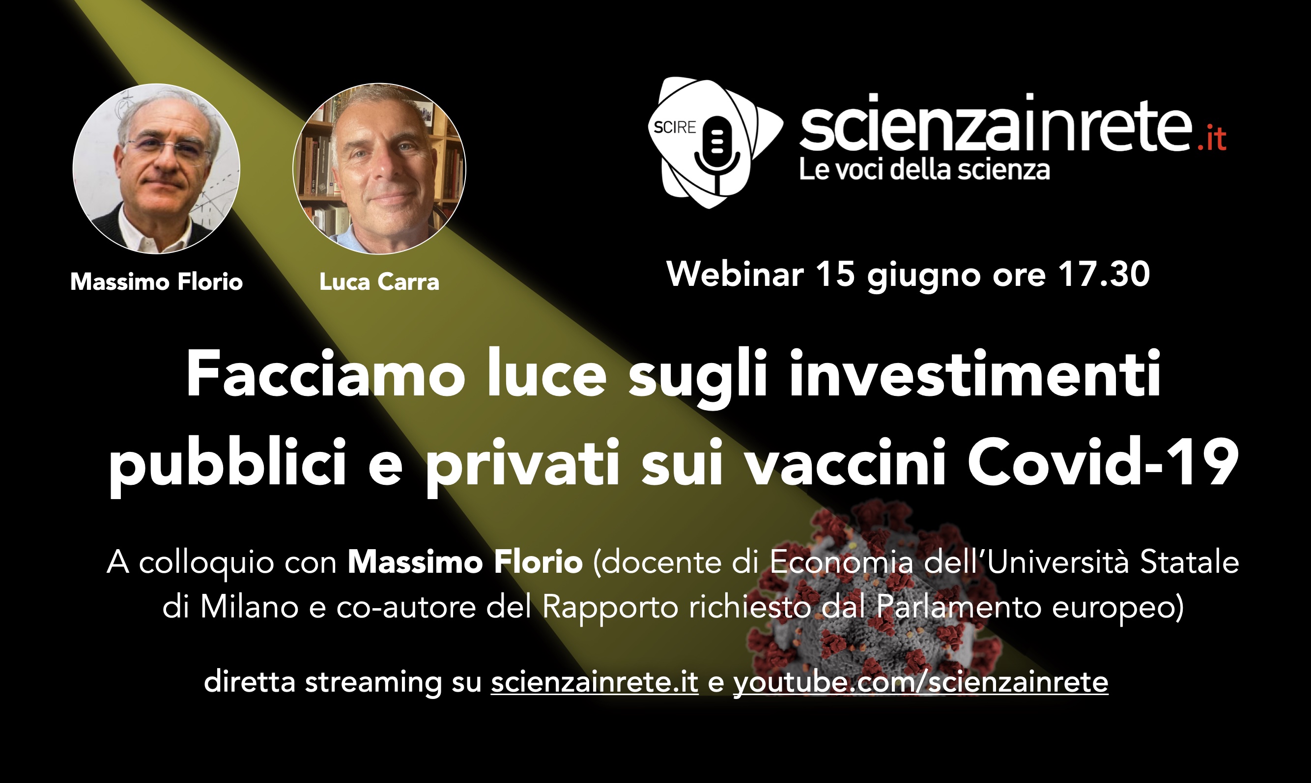 Luca Carra intervista Massimo Florio, dell'Università degli studi di Milano, che insieme ai suoi colleghi ha prodotto un report per ricostruire la mappa degli investimenti pubblici e privati sulla ricerca e sviluppo dei vaccini su richiesta del Parlamento europeo. Il Comitato speciale del Parlamento UE sul Covid ha approvato il 13 giugno delle raccomandazioni per migliorare la risposta alle minacce pandemiche.