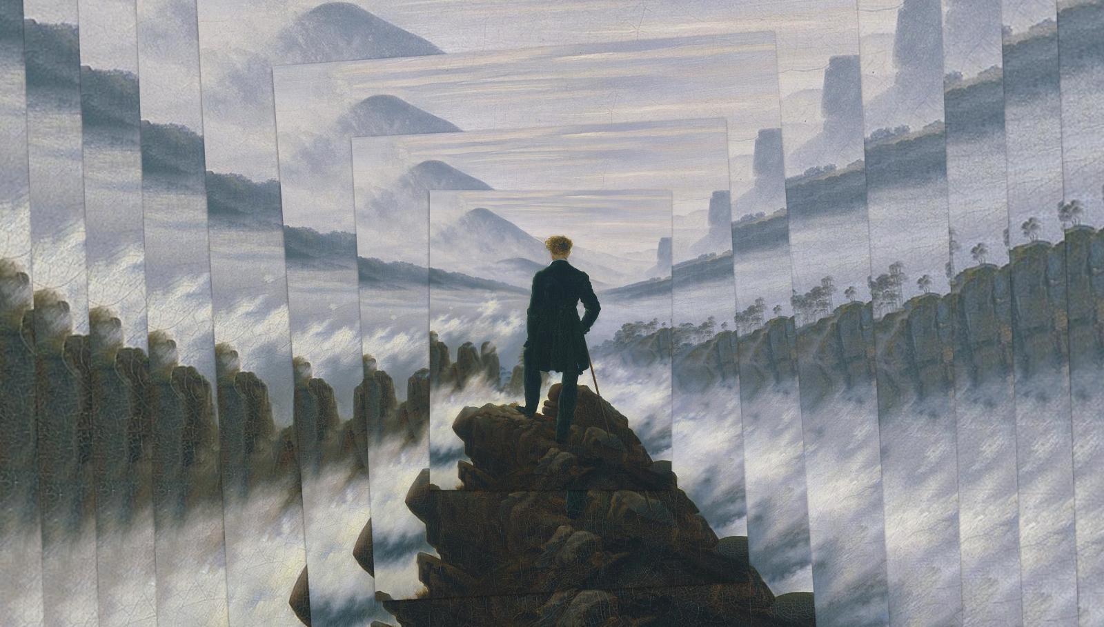 Immagine: elaborazione grafica dell'opera "Der Wanderer über dem Nebelmeer" di  Caspar David Friedrich (Wikimedia Commons. Licenza: dominio pubblico)